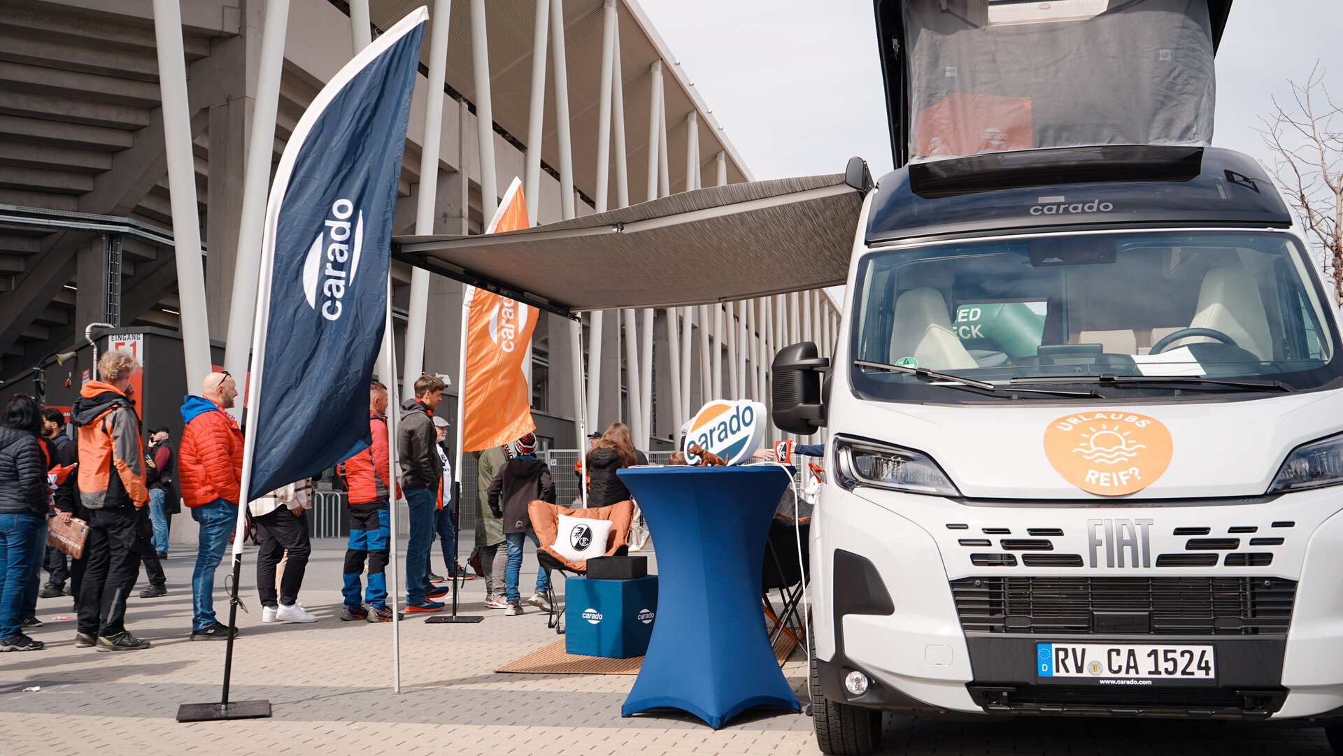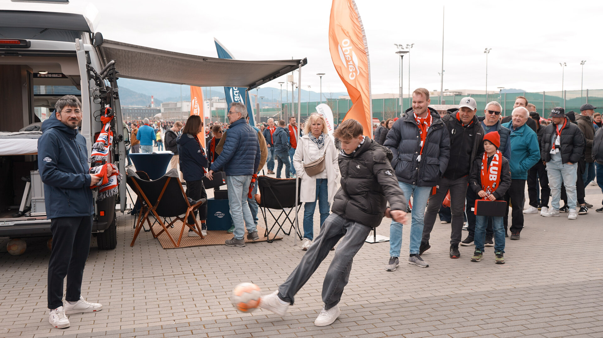 We are at the Europa-Park Stadium with our Carado promotional stand for Sport-Club Freiburg e.V. – the atmosphere around the stadium is simply fantastic! The next game we will be attending will take place in April 2026. We look forward to seeing all the fans and having great conversations.